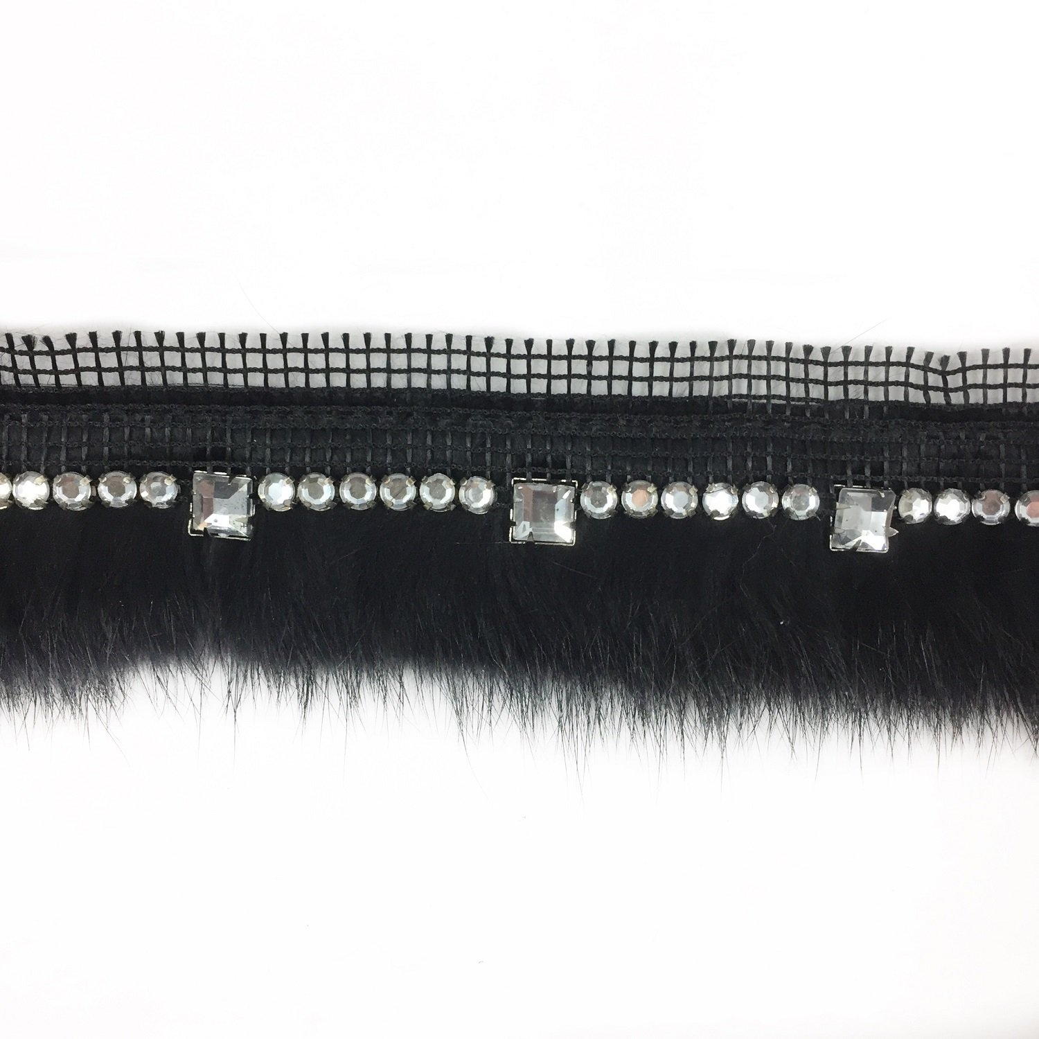 Τρέσα που αποτελείται από δίχτυ, γούνα, πέτρες και στράς κατάλληλη για στολισμό ενδυμάτων και διάφορων αξεσουάρ.